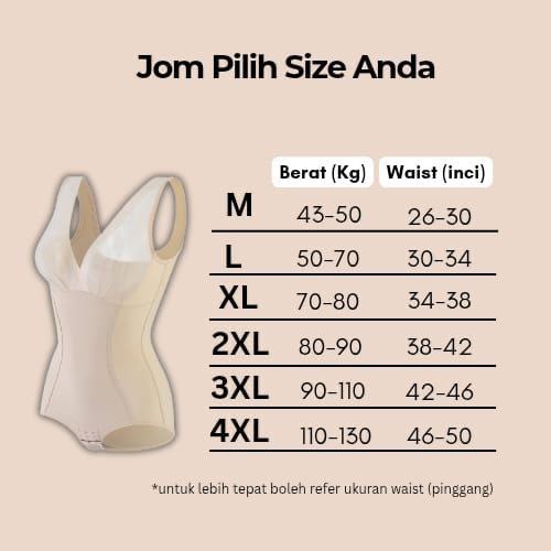 Boleh ikut cadangan saiz pada jadual saiz yang diberikan (mengikut berat badan)